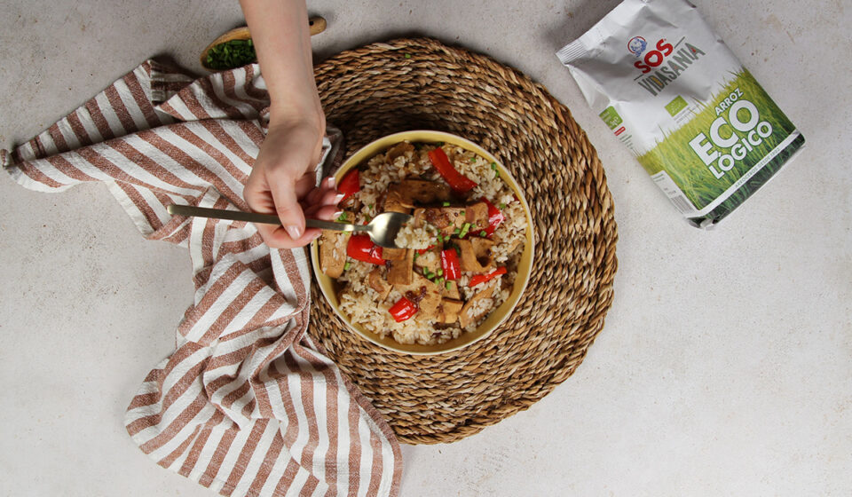 Mientras se marcan los toques finales del wok de tofu con arroz y verduras, ponemos a cocer nuestro inigualable arroz SOS Ecológico. Sigue las instrucciones del paquete, como si de una receta espectacular de tofu y arroz se tratara. En unos 13 minutos, tendrás listo el protagonista del platillo vegano.