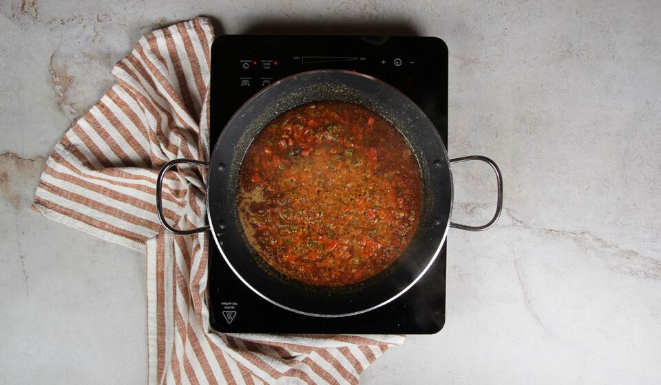 Con el fuego bajo, el pimentón entra en juego, y un poquito después, el vino blanco que alza el telón a una ebullición breve para evaporar el alcohol. La clave está en meneo constante, permitiendo que todos los sabores se abracen. Esta salsa verde será la chispa que encenderá nuestra fideuá de marisco de la abuela.